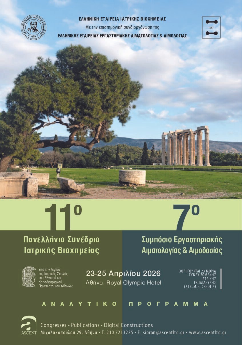 11ο Πανελλήνιο Συνέδριο Ιατρικής Βιοχημείας – 7ο Συμπόσιο Εργαστηριακής Αιματολογίας/Αιμοδοσίας – Προκαταρκτικό Πρόγραμμα Αθήνα, Royal Olympic Hotel 23 - 25 Απριλίου 2026